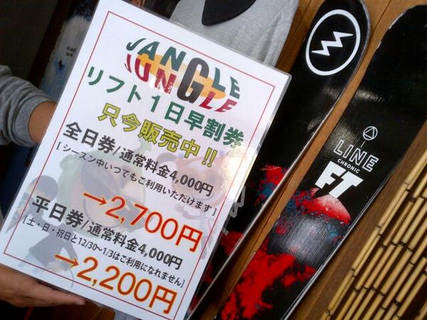 10月1日からはジャングルジャングルスキー場の早割1日券も発売中~。
