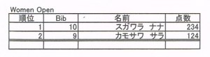 カットライン予選上位5名。予選、決勝共に2本中1本のベストポイント。ジャッジ3名、100点満点採点。ジャッジ3名のため、選手1人300点満点となっています。