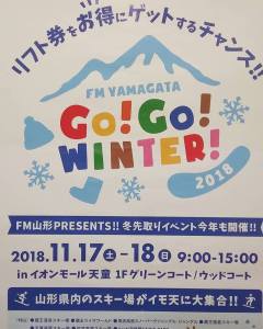 今年は雪の便りが遅い感じですが、今週末の17日&18日、ウインターシーズンのキックオフイベント「GO!GO!WINTER!」がイオンモール天童にて開催されます。