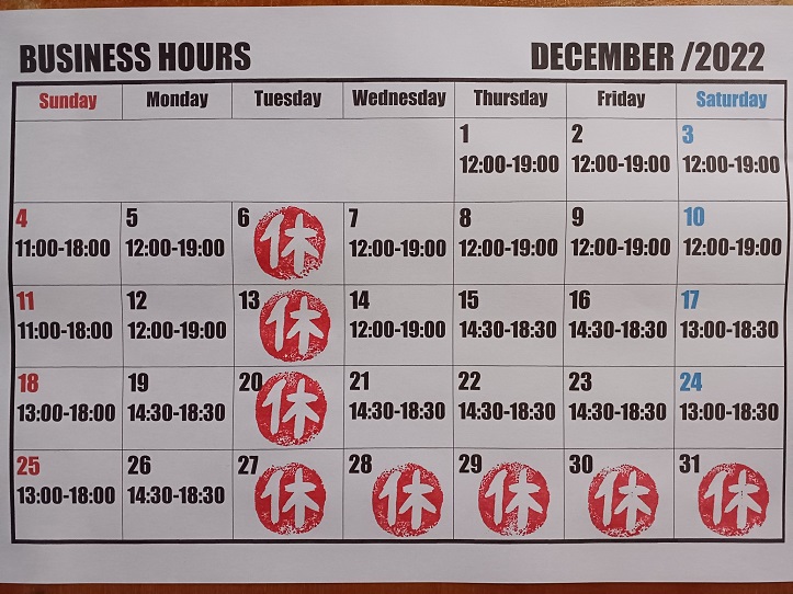 12月15日より東根市本店は冬季営業体制に変更となります。お休み日、営業時間が不定期となりますので、ホームページよりご確認をお願いします。当店Twitterの方にも随時ご案内します。