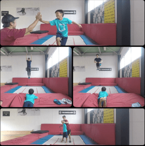 店内設置しておりますトランポリン、いつもご利用ありがとうございます。お得なチケット、時間券もございますのでご活用ください。こちらのトランポリンを使用して、9月もレッスンをおこなっております。