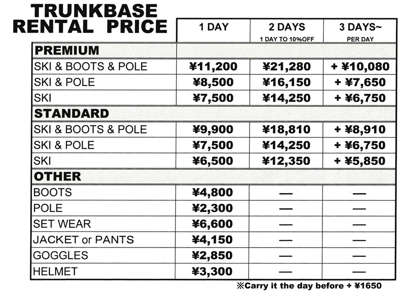 TRUNKBASE ZAO店(山形蔵王温泉、ZAO ONSEN)にて、レンタルが可能です。